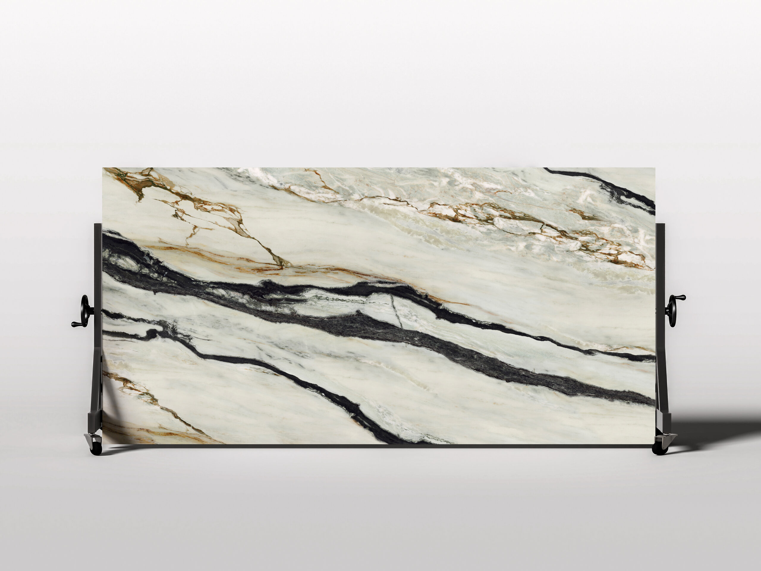 Marble Bianco Gold, a true gem of nature, boasts a deep, lustrous black backdrop adorned with intricate, contrasting white veining. Its dramatic appearance exudes a sense of grandeur and refinement, making it an iconic choice for those seeking a statement piece in their living spaces.