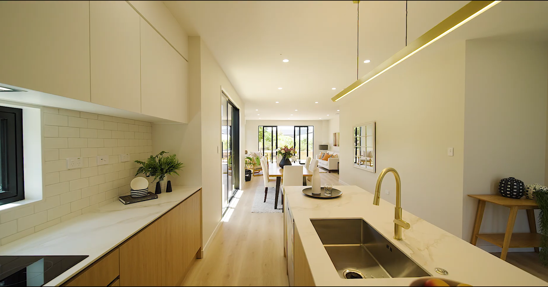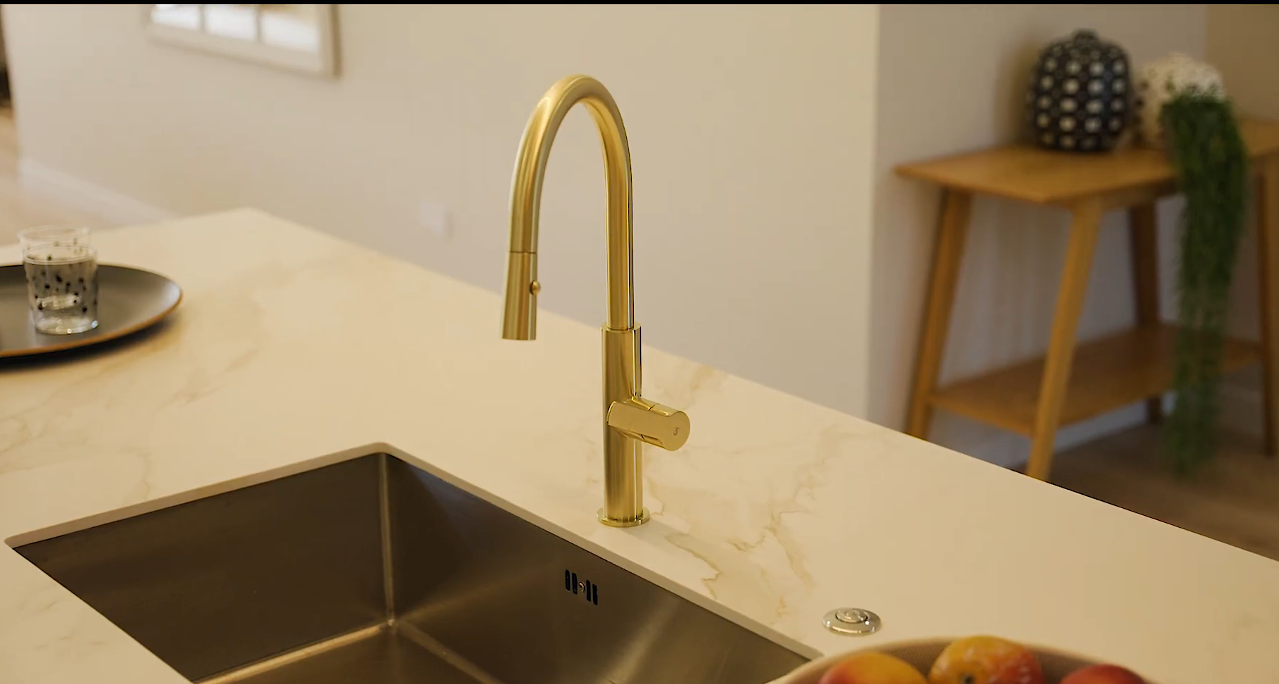 - Bright continuous benchtop surface — reflects light and enhances spaciousness.
