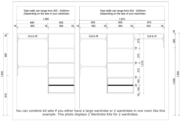 Fit up to 2400mm wide space (Can be cut to fit the size you need)