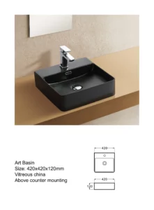 Matt Black Square Countertop Art Basin - Solid Surface-JB2173 SMB