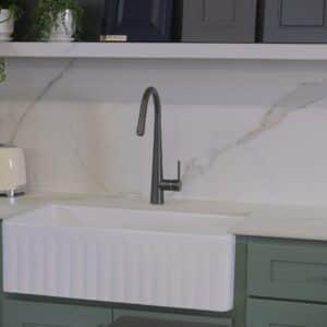 An elegant butler sink featuring a ribbed profile with a durable ceramic glazed finish.