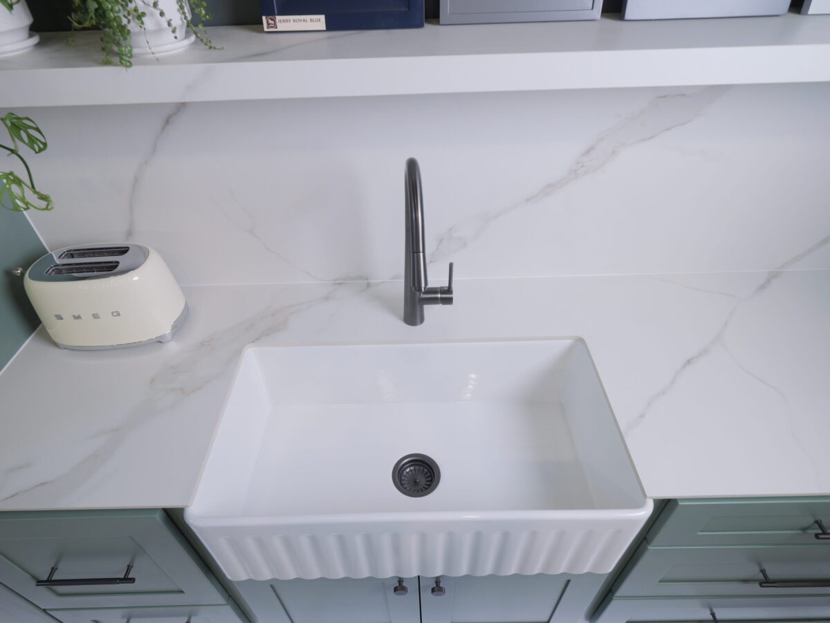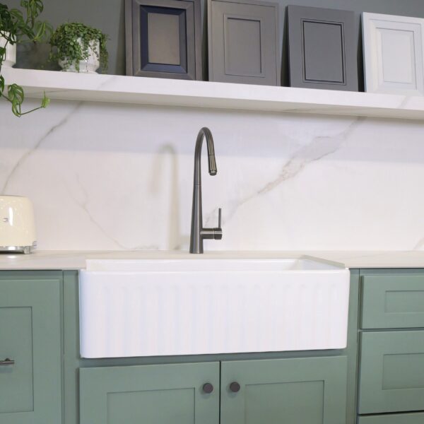 An elegant butler sink featuring a ribbed profile with a durable ceramic glazed finish.
