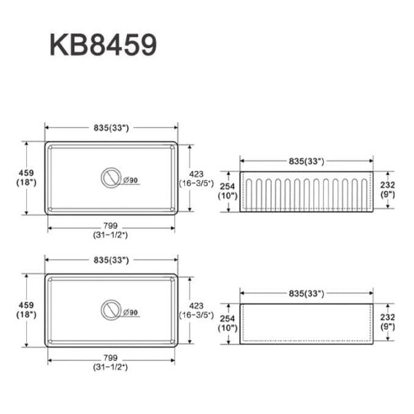 Luxury Kitchen Butler Sink 835x459mm - Ceramic White Glazed- KB8459D
