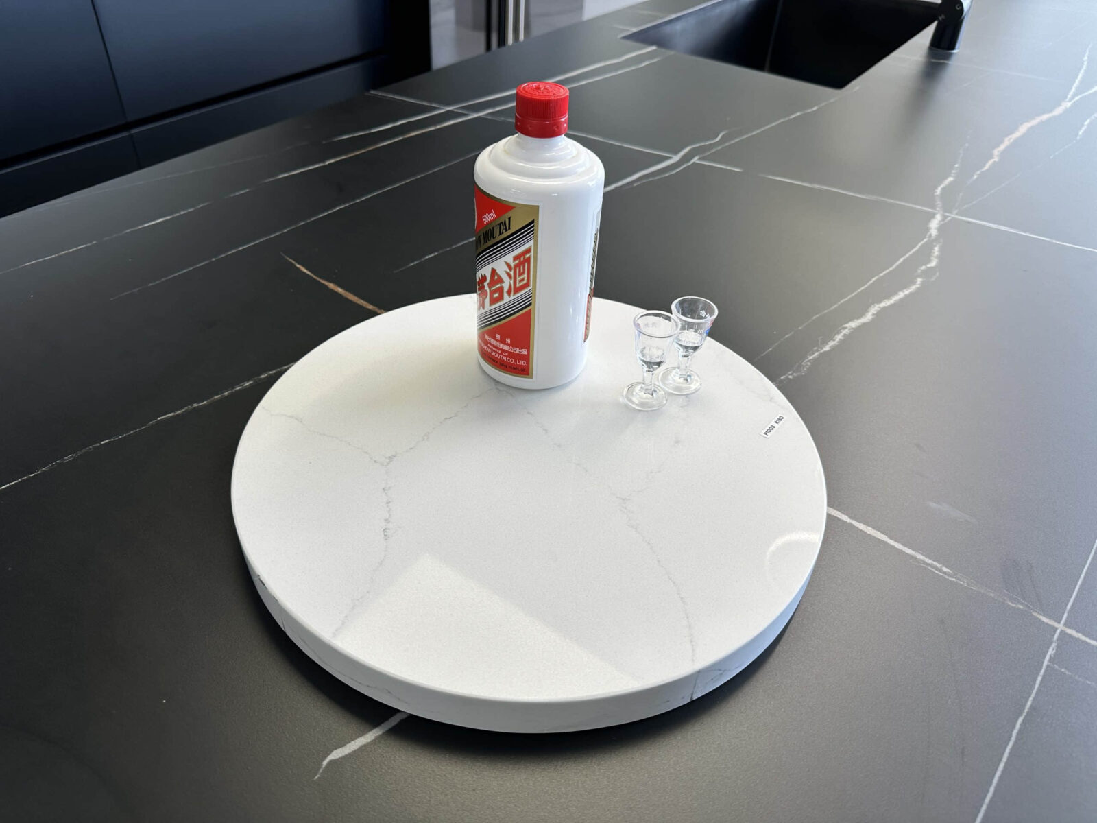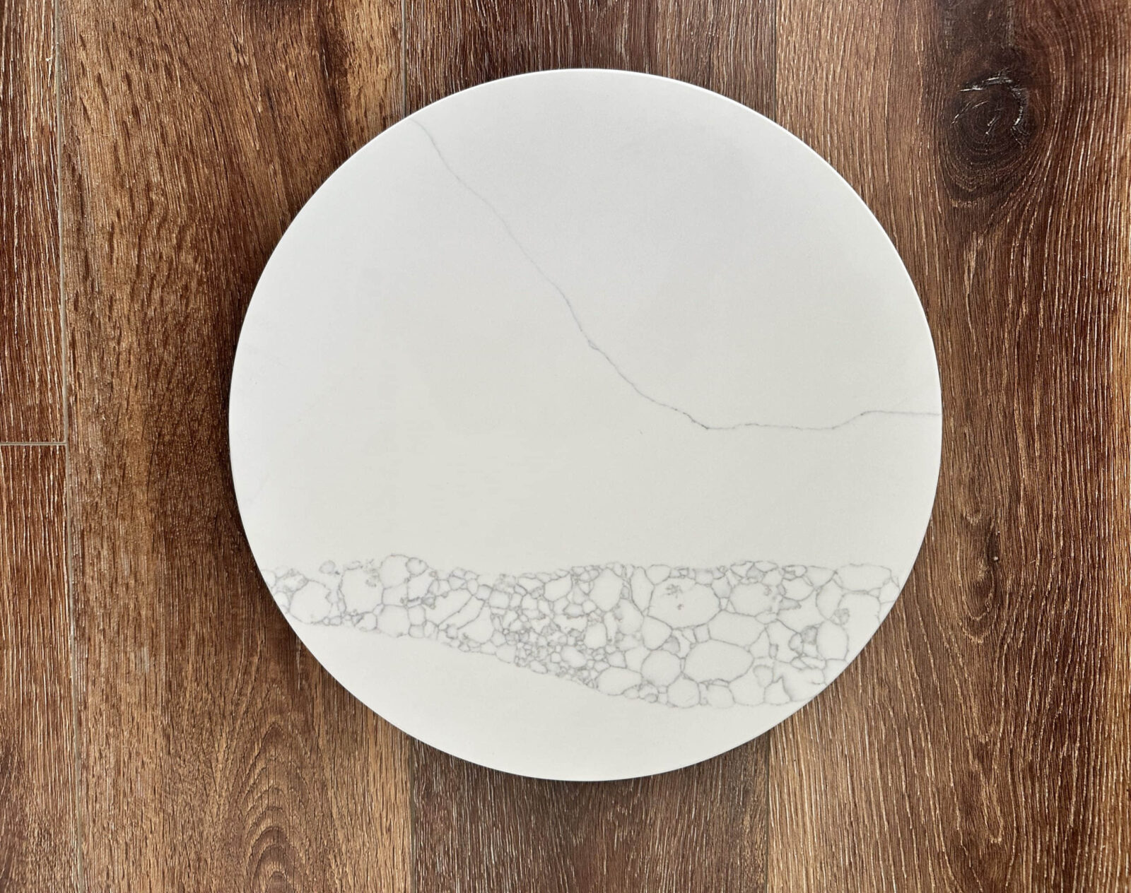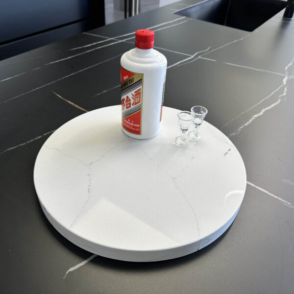 Made from high-quality engineered or sintered stone for lasting appeal and durability. Set a stunning and inviting table for your friends, family, and guests with the Jerry Kitchen & Bath Circular Marble Serving Board.