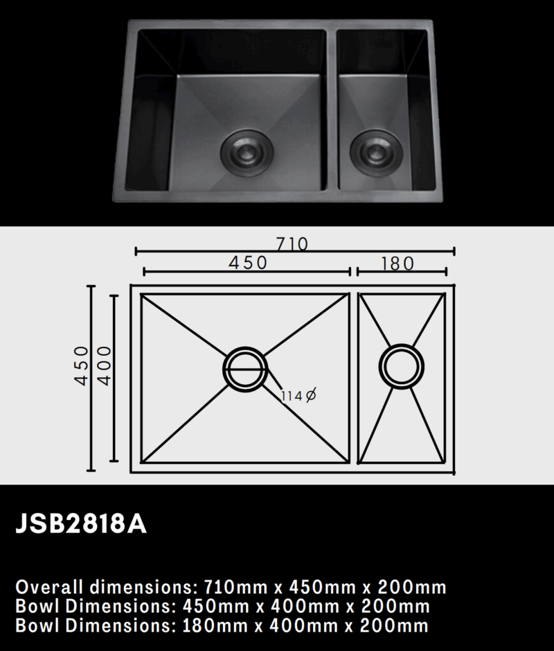 Luxury Double Bowl Kitchen Sink 700x450mm - Stainless Steel- JS2818A