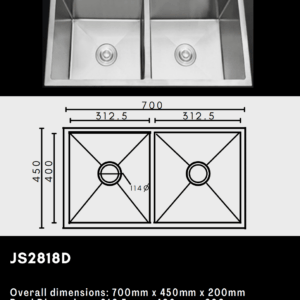 Luxury Double Bowl Kitchen Sink 700x450mm - Stainless Steel- JS2818A