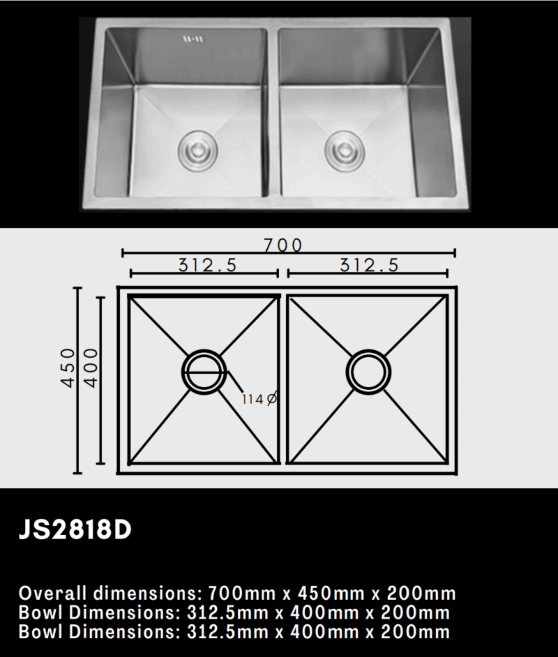 Luxury Double Bowl Kitchen Sink 800x450mm - Stainless Steel - JS3118D