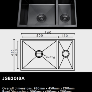 JS2418 Premium Single Bowl Kitchen Sink 590x450mm - Stainless Steel - JS2418