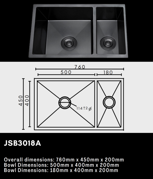 Luxury Double Bowl Kitchen Sink 700x450mm - Stainless Steel- JS2818A