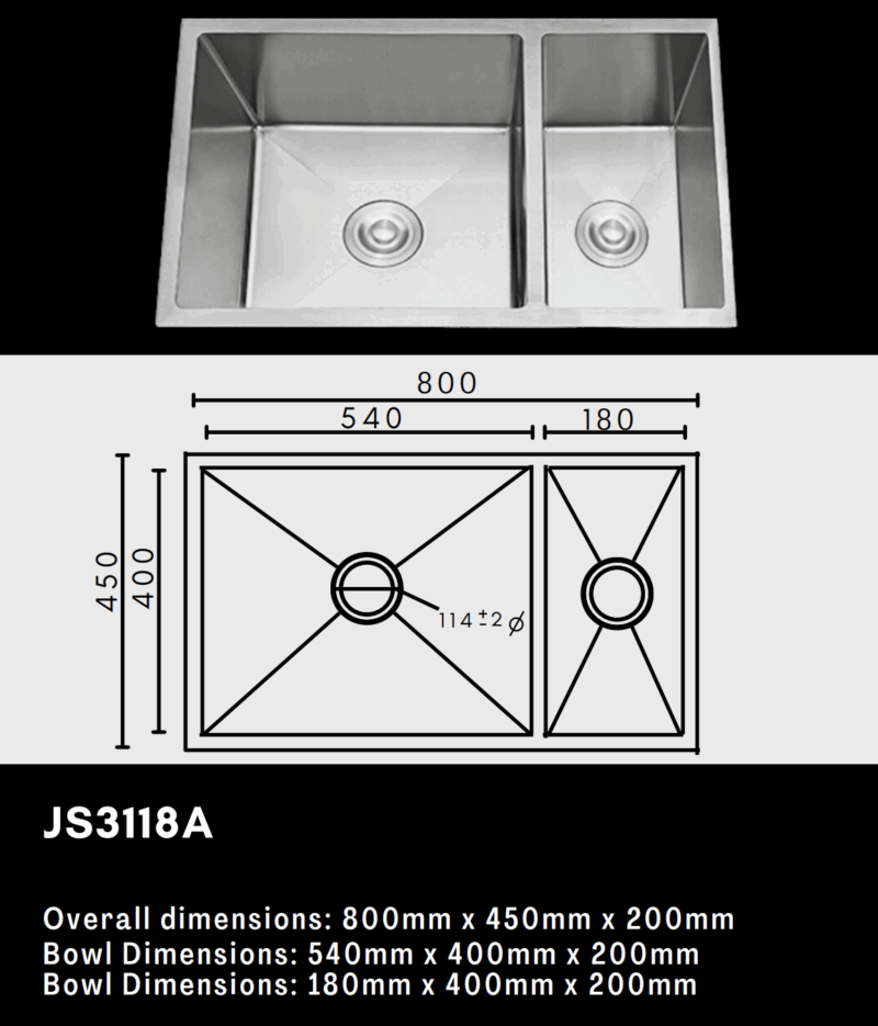 Luxury Double Bowl Kitchen Sink 700x450mm - Stainless Steel- JS2818A