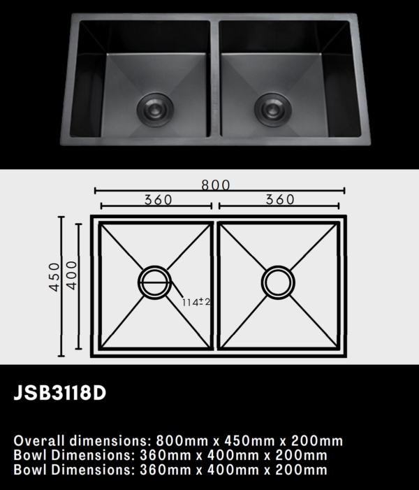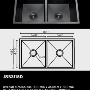 Elevate your kitchen’s form and function with the JSB3118D Luxury Double Bowl Sink — a contemporary design built for practical multitasking. Featuring two deep, spacious bowls, this sink is ideal for washing, rinsing, and food preparation simultaneously, bringing efficiency and elegance to your daily routine.
