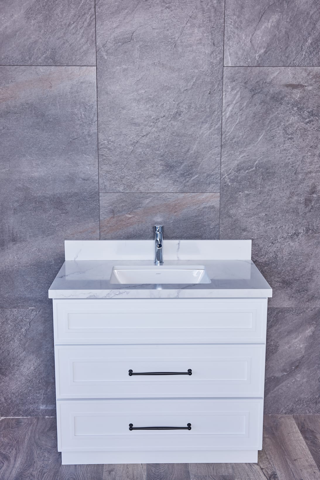 * Vanities, SOLID WOOD draws and front panels, plywood for back panel: please refer to pictures