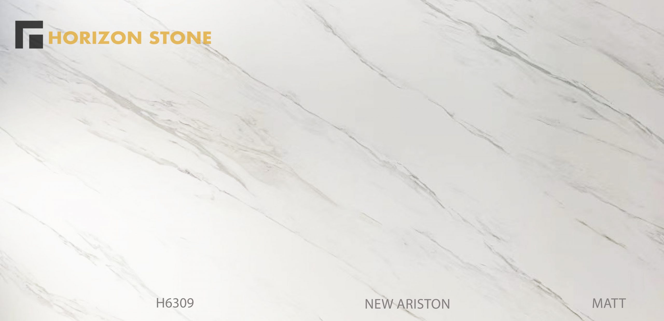 New Ariston in a matte finish brings a touch of sophistication to any space. Its muted, velvety texture creates a serene and calming ambiance, making it an ideal choice for contemporary and minimalist designs. Not only does it offer exceptional aesthetics, but it also boasts remarkable durability. It is well-suited for residential and commercial applications and is resistant to scratches, stains, and heat. Its non-porous surface ensures easy cleaning and maintenance, providing a hygienic and low-maintenance solution.