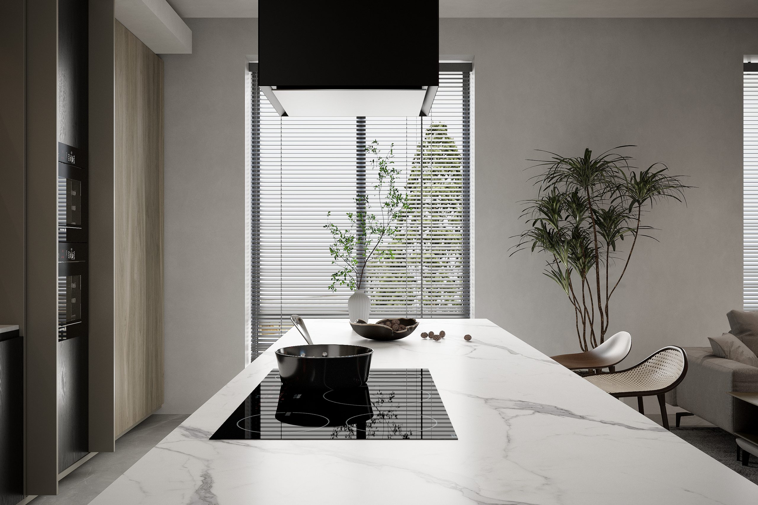 Use Horizon Stone Statuario Matt extensively in domestic and commercial installations as your reliable sintered stone. This is a durable and easy care solution for kitchen benchtops and other surfaces, and the aesthetic accuracy of white marble with striking grey veining makes it possible to achieve a valuable and beautiful result. It also has all the advantages of sintered stone with a nonporous surface and stain-resistant surface.