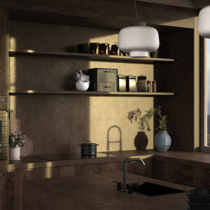 The key is contrast. Our featured product, Horizon Stone Iron Brown, can set the mood for your modern home. The smooth texture of the deep brownish-red color provides the perfect contrast to a solid or dark space.