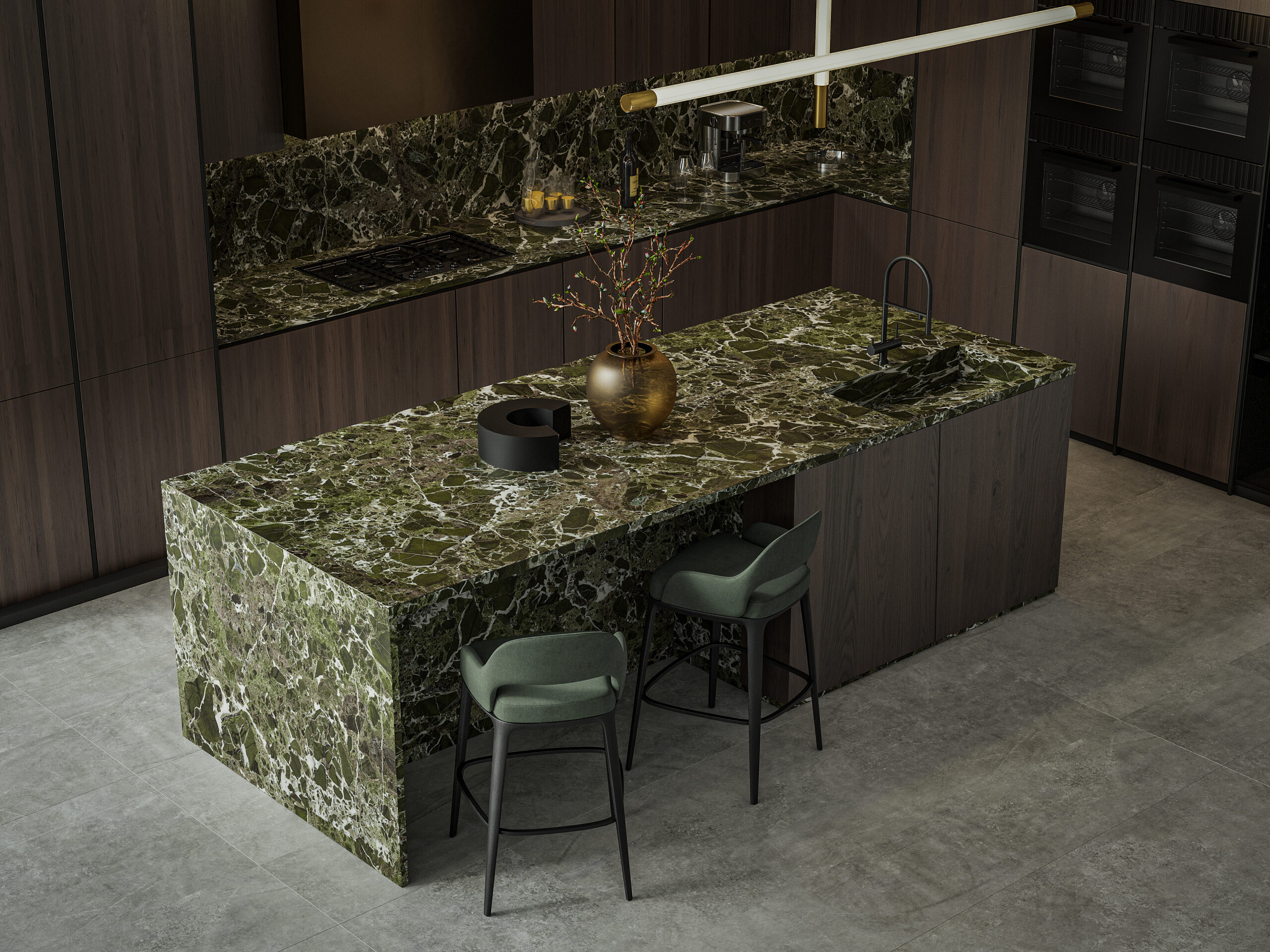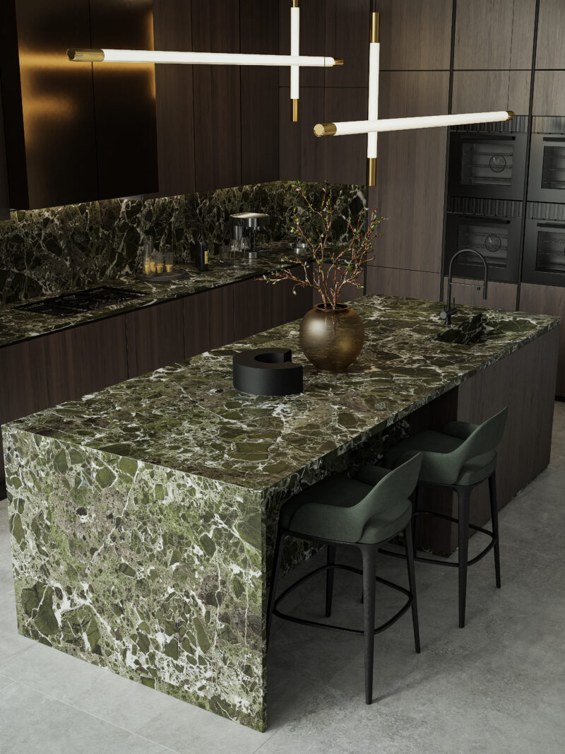 The Peacock Verde Benchtop with a textured finish brings a touch of luxury and sophistication to any space. Its rich, deep green tones, reminiscent of a peacock’s plumage, create a striking visual impact while the textured surface adds depth and character. Made from premium materials, this benchtop is durable, scratch-resistant, and easy to maintain, making it ideal for both kitchens and high-traffic areas. Combining elegance with practicality, the Peacock Verde Benchtop is a stunning choice for those seeking a functional surface with a bold, stylish statement.
