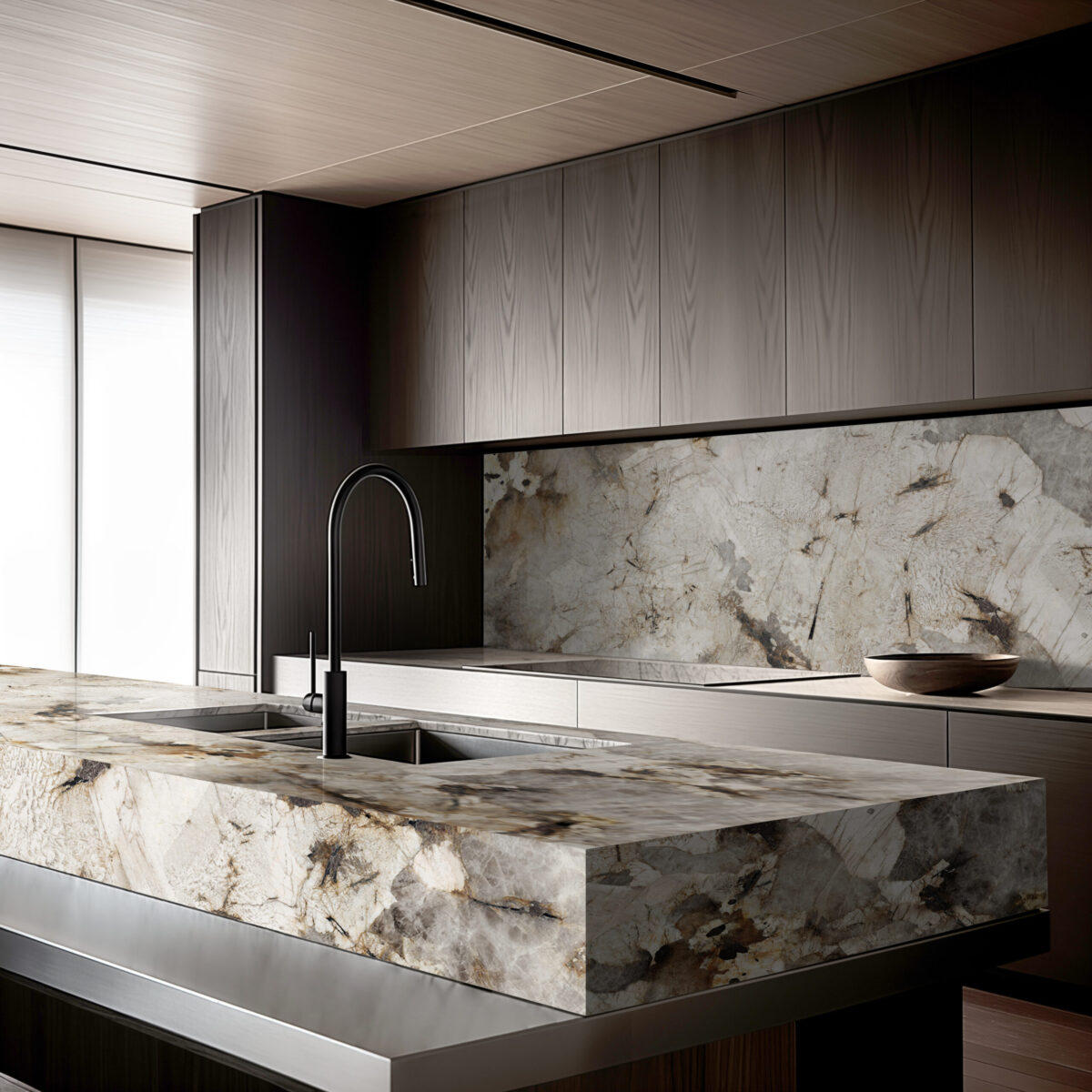 The Pandoria Benchtop in a gentle textured finish showcases natural elegance with its soft tones and refined surface detail. Crafted from premium sintered stone, it combines beauty with exceptional durability, offering resistance to heat, scratches, and stains. The subtle texture adds depth and a tactile appeal, creating a warm and inviting feel in any kitchen or interior space. Easy to maintain and designed for long-lasting performance, the Pandoria Benchtop is the perfect choice for those seeking a harmonious balance of style, texture, and functionality.
