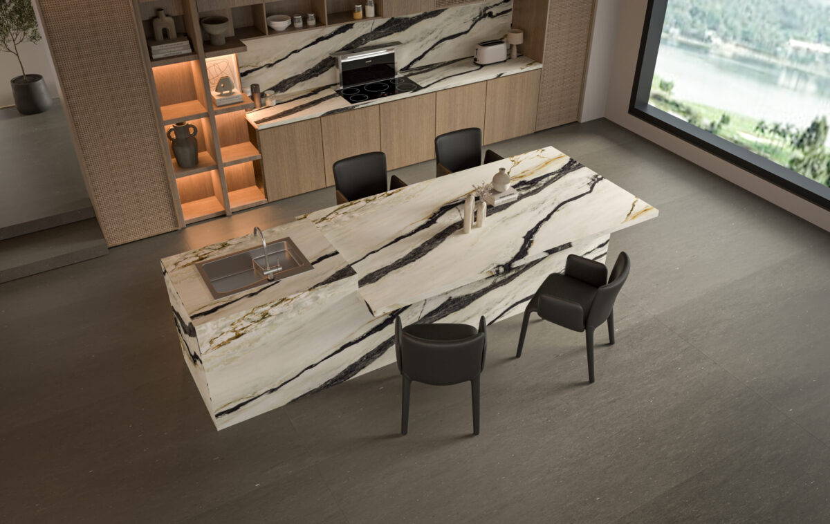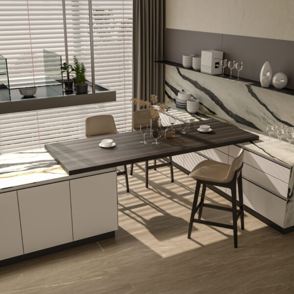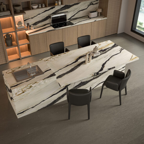 The Panda Gold Benchtop with a textured finish exudes a gentle yet luxurious charm, bringing warmth and sophistication to any kitchen or workspace. Its soft golden tones, accented with subtle patterns, create a refined and inviting atmosphere, while the textured surface adds depth and character. Crafted from premium, durable materials, this benchtop is scratch, heat, and stain-resistant, ensuring long-lasting performance with minimal maintenance. Perfectly blending elegance with practicality, the Panda Gold Benchtop is an ideal choice for stylish, timeless interiors.