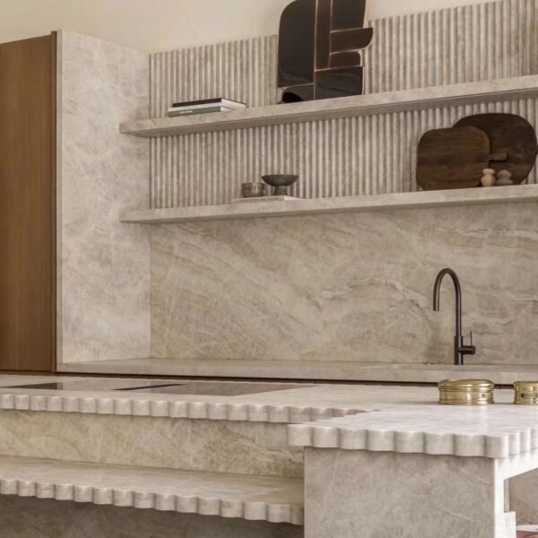 H8201 Taj Mahal is an exquisite engineered stone that draws inspiration from natural quartzite, showcasing a soft ivory base laced with warm taupe and subtle gold veining. Its elegant, marble-like appearance adds timeless sophistication to any interior, blending seamlessly with both modern and classic aesthetics. Ideal for kitchen countertops, islands, backsplashes, and bathroom vanities, this surface offers the beauty of natural stone with enhanced durability, stain resistance, and low maintenance. H8201 Taj Mahal enhances open-concept living spaces by creating a bright, inviting atmosphere while harmonizing effortlessly with wood, metal, and neutral-toned cabinetry. Perfect for luxurious yet practical interior design.Transform your kitchen with the timeless elegance of a Taj Mahal engineered stone benchtop. Featuring soft cream and beige tones with gentle, marble-like veining, it adds a touch of luxury and warmth to any space. Perfect for light-filled, modern or traditional kitchens, this surface combines classic beauty with low-maintenance durability. Ideal for homeowners seeking sophistication, comfort, and lasting value in their kitchen renovation.
