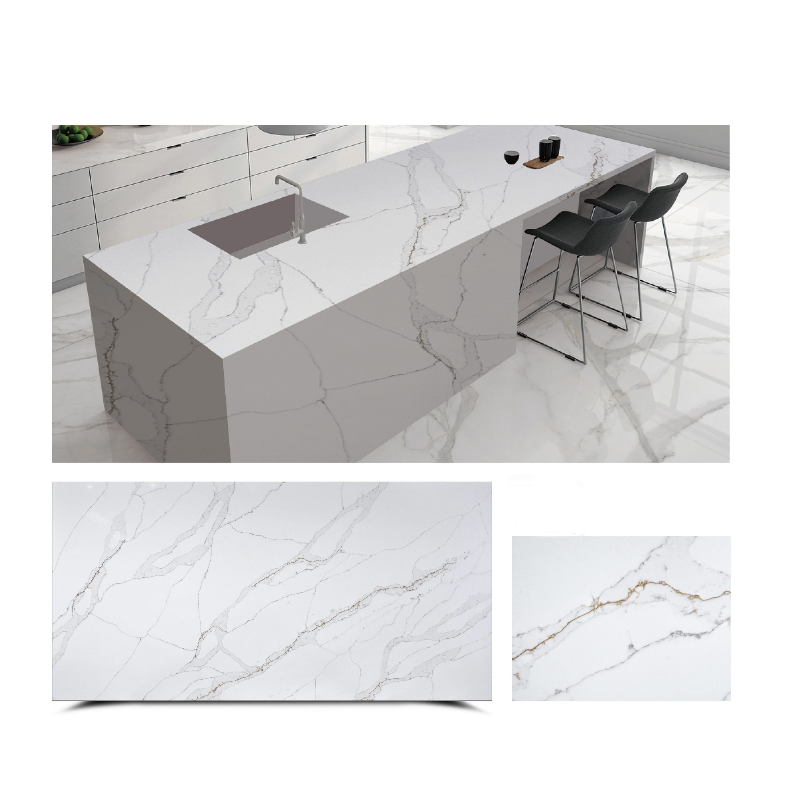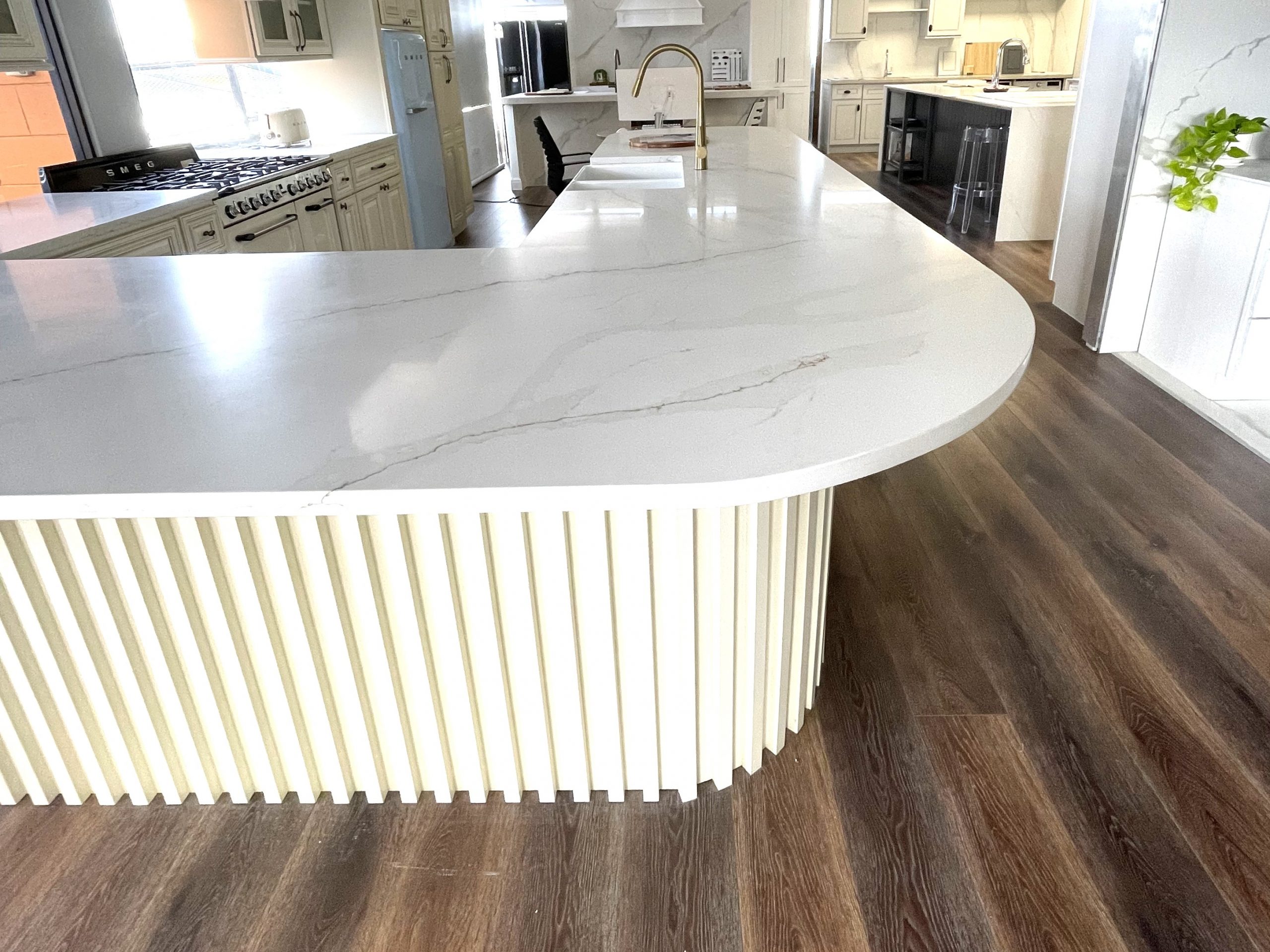 A dream of neutrality. Whether it is modern integrated cabinetry or classic solid shaker doors, our Horizon Stone Cararra Gold can blend seamlessly into any design-style kitchen. This stone can boast a lavish broad vein structure that cascades across a benchtop and up to the splashback. It also blends in beautifully with any brass or copper hardware and accents you may have in the room, thanks to its subtle gold veining.