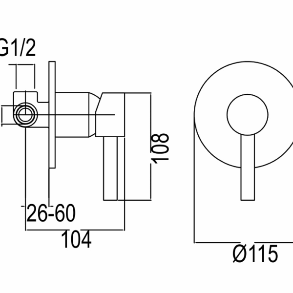 Wall Shower Mixer, Ø35mm, Brass body, Zinc alloy handle, MJ Ceramic cartridge, Ø115mm-Hollow Panel