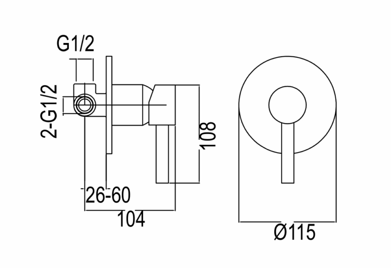 Wall Shower Mixer, Ø35mm, Brass body, Zinc alloy handle, MJ Ceramic cartridge, Ø115mm-Hollow Panel