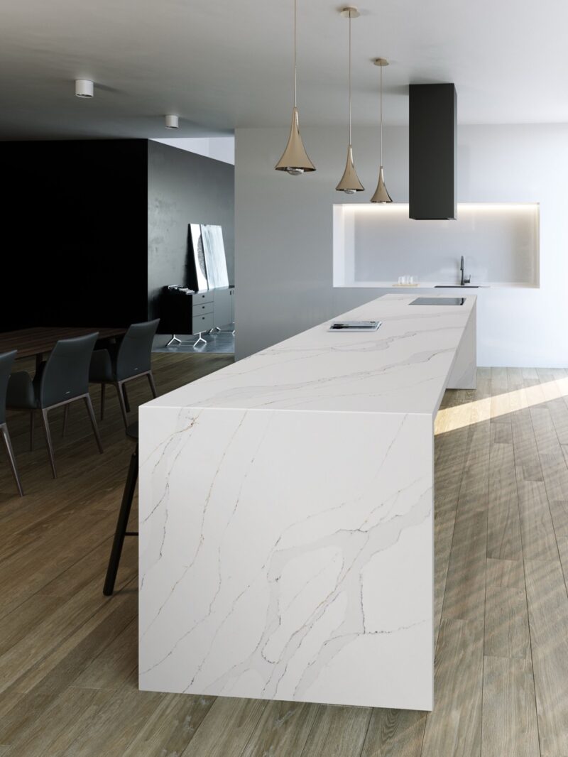 Engineered for superior performance, Calacatta Luxe is durable, stain- and scratch-resistant, non-porous, and simple to maintain. Its hygienic and food-safe finish makes it perfect for everyday use, maintaining its brilliance and beauty over time.
