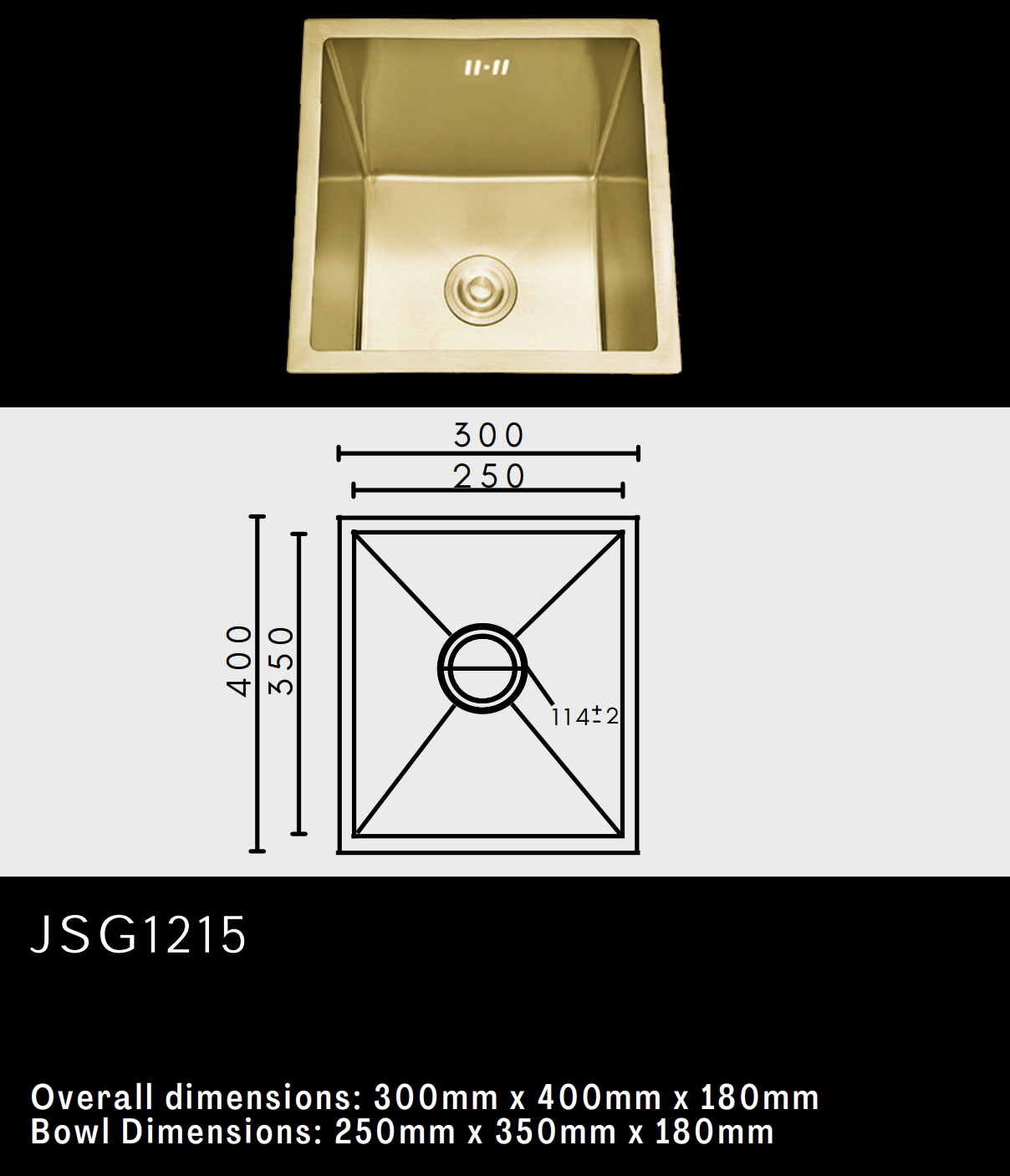 Premium Single Bowl Kitchen Sink 450x450mm - Stainless Steel - JS1818